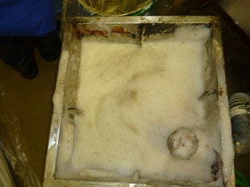 生成された石鹸水が、グリストラップの仕切り板や槽内に 付着した黒カビを清掃するので、汚れ・悪臭・害虫の抑制など衛生面の問題が改善されます。 また、洗浄効果を伴った 石鹸水が排水管へと流れ出ていくので、排水管の内側に 付着した油の塊も通常3ヶ月ほどで解消されます。