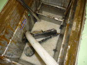 廃液利用型石けん化衛生工法「グリピカ」は、汚れがひどいグリストラップ・オイルトラップの清掃に最適です。